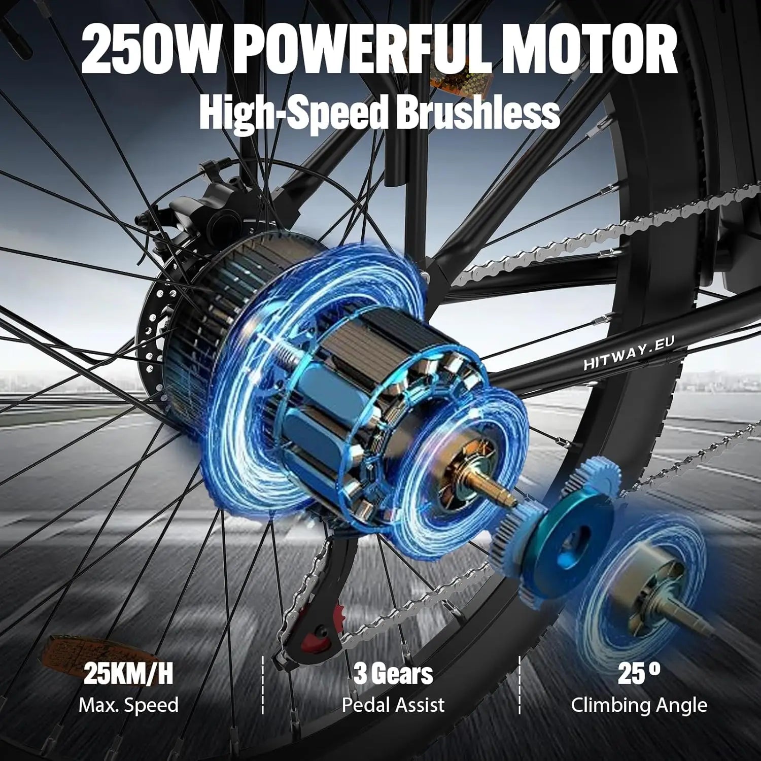 ⚡ Leistungsstarker 250W Motor (36V) – unterstützt zuverlässig bis 25 km/h, ideal für Stadt & Land
