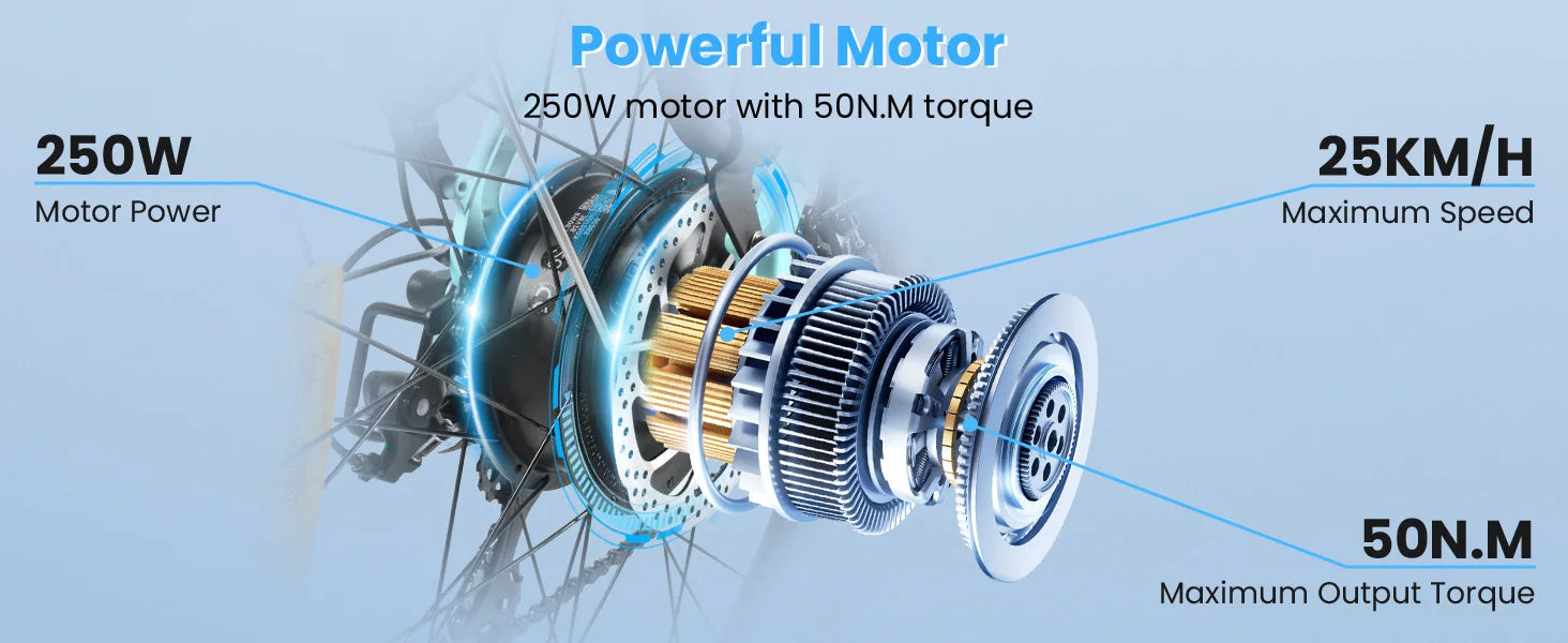 ⚡ 250 W Motor – Unterstützt dich sanft bis 25 km/h, ideal für urbane Strecken