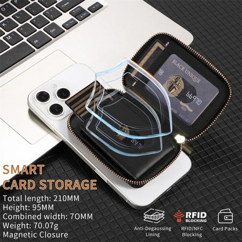 🧲 Magnetischer Verschluss – hält Karten & Smartphone sicher zusammen