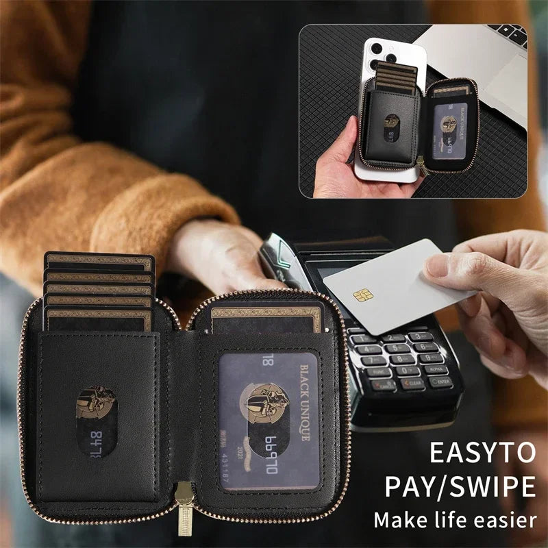 Magnetische Leder Geldbörse-Hülle mit Kartenhalter & Reißverschluss – Handyhülle mit Standfunktion für iPhone 16 / 15 / 14 / 13 / 12 / 11 Pro Max (MagSafe)