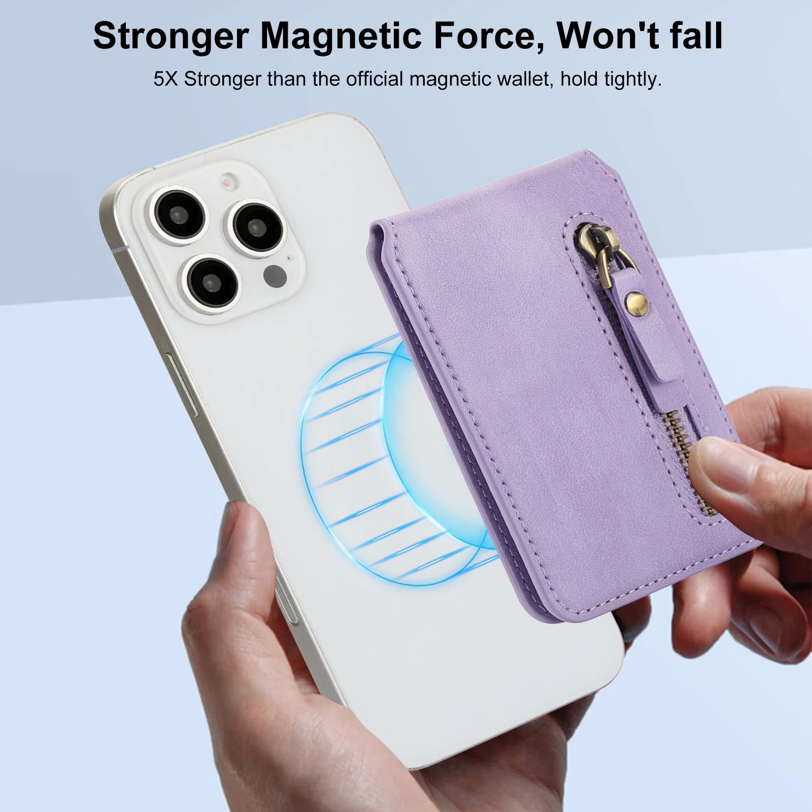 Magnetische Geldbörse Hülle mit Kartenhalter & Reißverschluss – kompatibel mit iPhone 16 Pro Max / 15 / 14 / 13 / 12 (MagSafe)