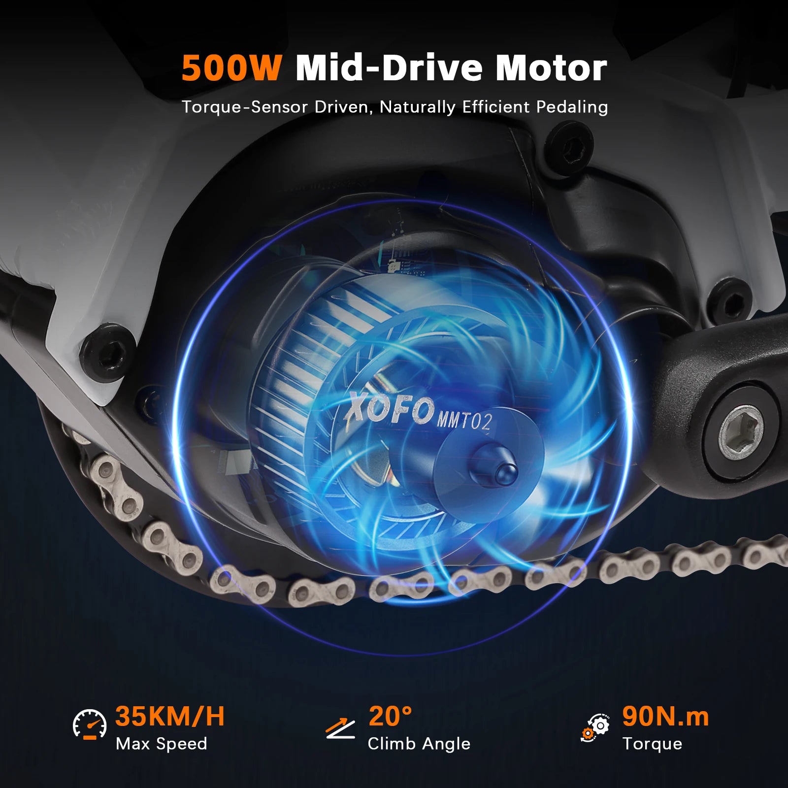 ⚡ 500W Mittelmotor & 90 Nm Drehmoment: Für kraftvolles Beschleunigen und müheloses Hügelsteigen
