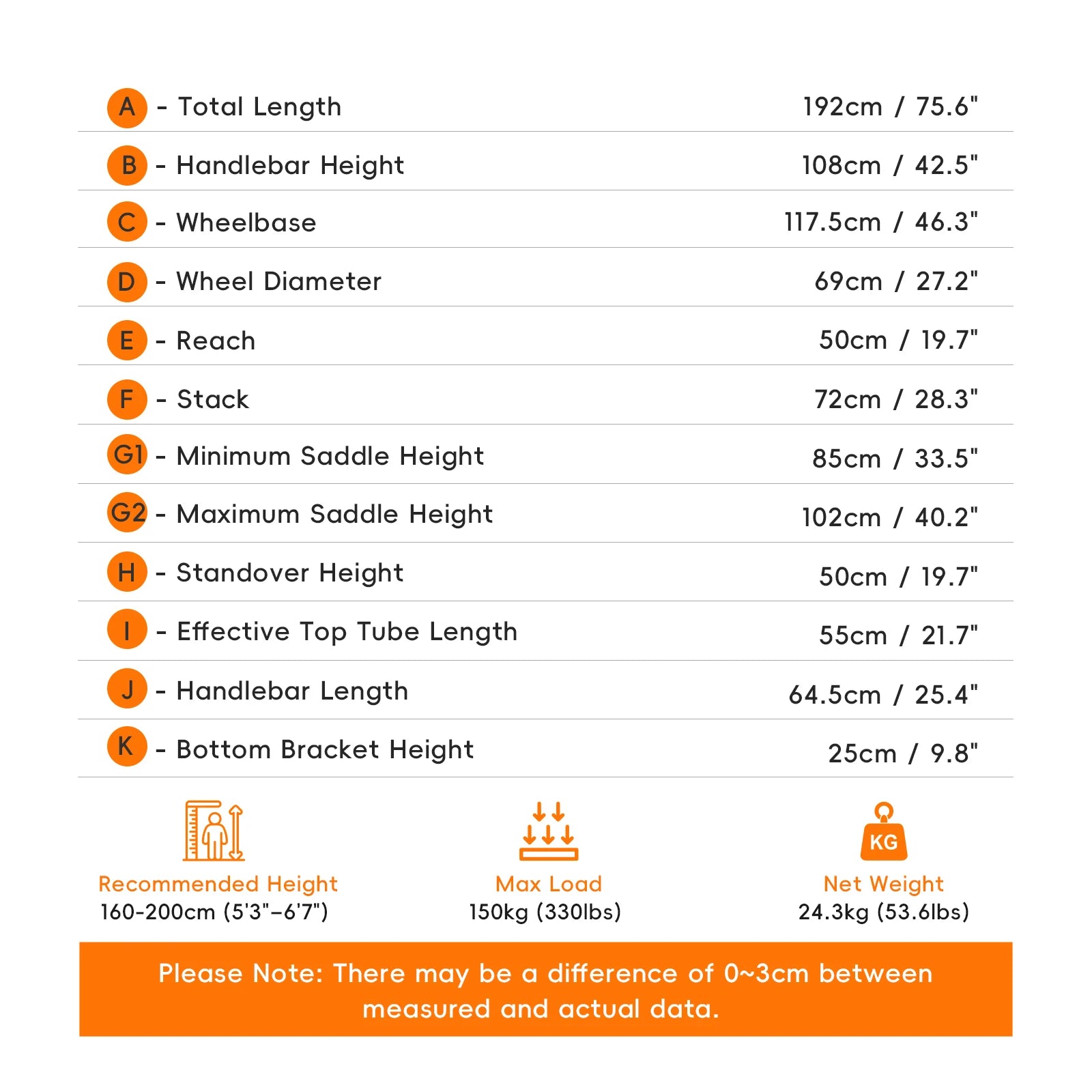 Motor: 500W: 48V 14Ah Lithium Batterie, Reichweite: ca.50-70 km(abhängig von Gewicht, Gelände, Fahrweise etc.), Ladezeit: ca. 6–8 Stunden (geschätzt),Max. Geschwindigkeit: 25 km/h, Gewicht: ca. 26 kg, Radgröße: 27-5 Zoll x2,1 Luftreifen, Passagierkapazität:1Personen, Rahmenmaterial: Aluminium Zertifizierung: CE-zertifiziert gemäß EU-Richtlinien – geprüft auf Sicherheit und Qualität, Stil: Luxus E- City & Mountainbike