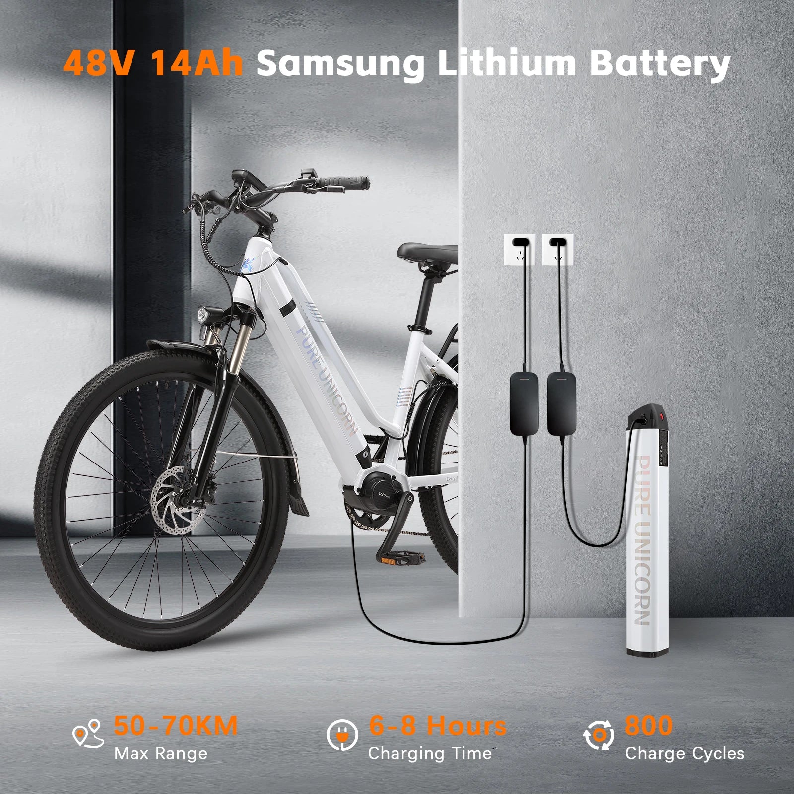 🔋 Abnehmbarer 48V 14Ah Samsung Akku: Reichweite bis 70 km pro Ladung für lange Touren