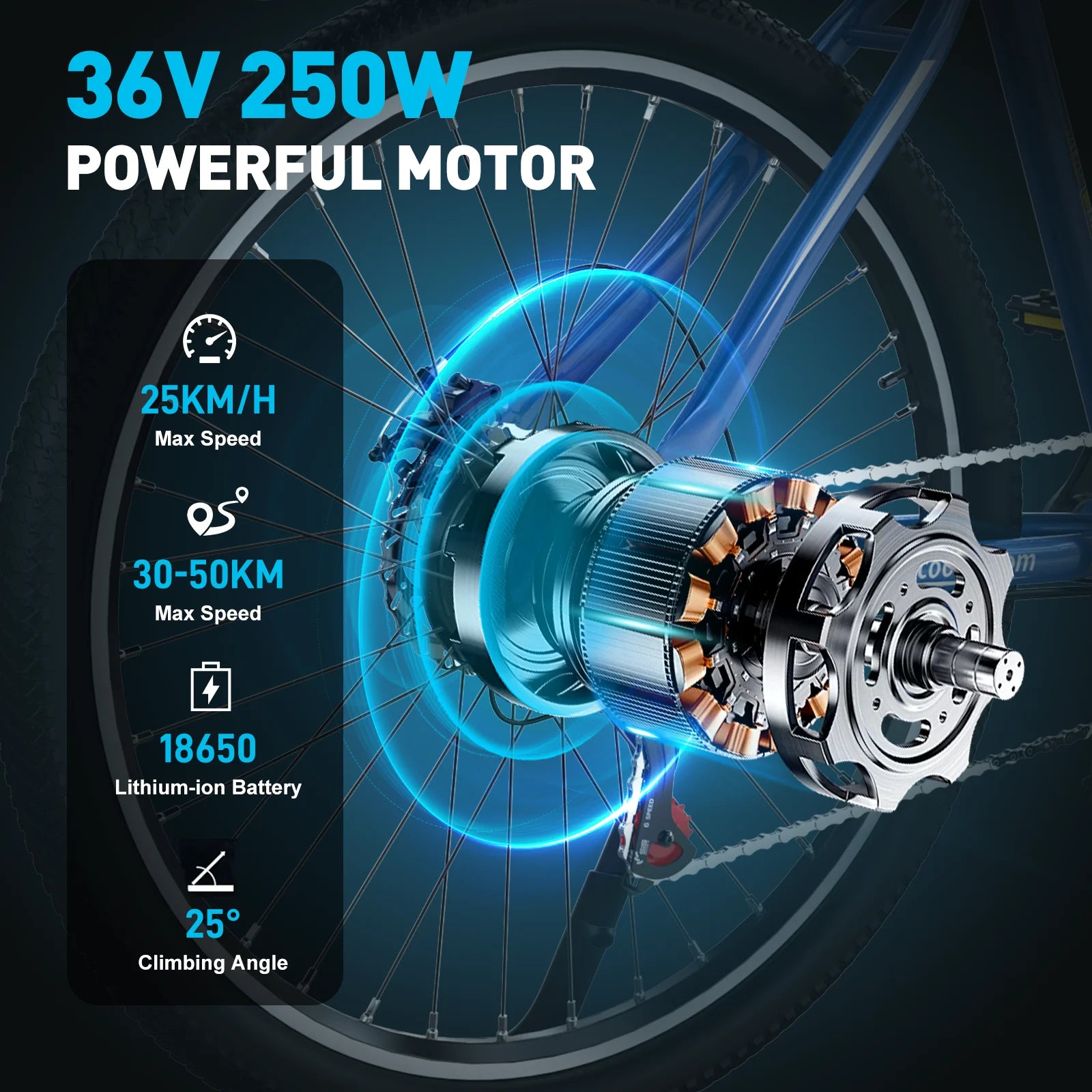 Ausgestattet mit einem 250W Hochleistungsmotor und 36V 10,4Ah Akku