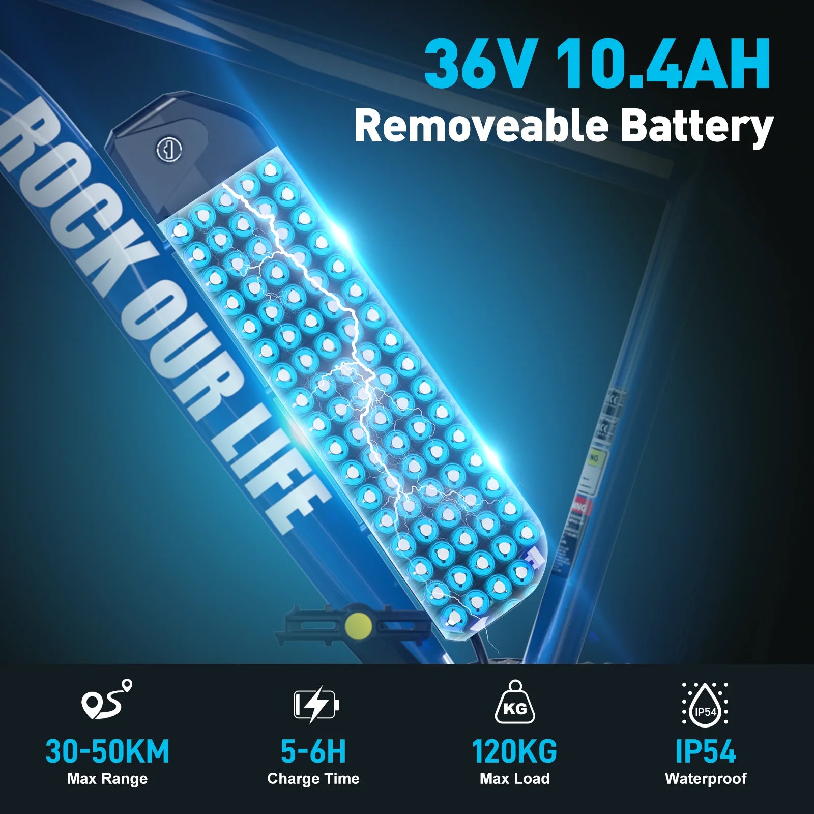Motor: 250 W Akku (Peak 500 W): 36 V / 10,4Ah Lithium Batterie, Reichweite: ca.50-80 km, Ladezeit: ca. 5–6 Stunden (geschätzt),Max. Geschwindigkeit: 25 km/h, Gewicht: ca. 27 kg, Radgröße: 26 Zoll x2 Luftreifen, Passagierkapazität:1Personen, Modell:RCBRK15, Rahmenmaterial: Aluminium Zertifizierung: CE,