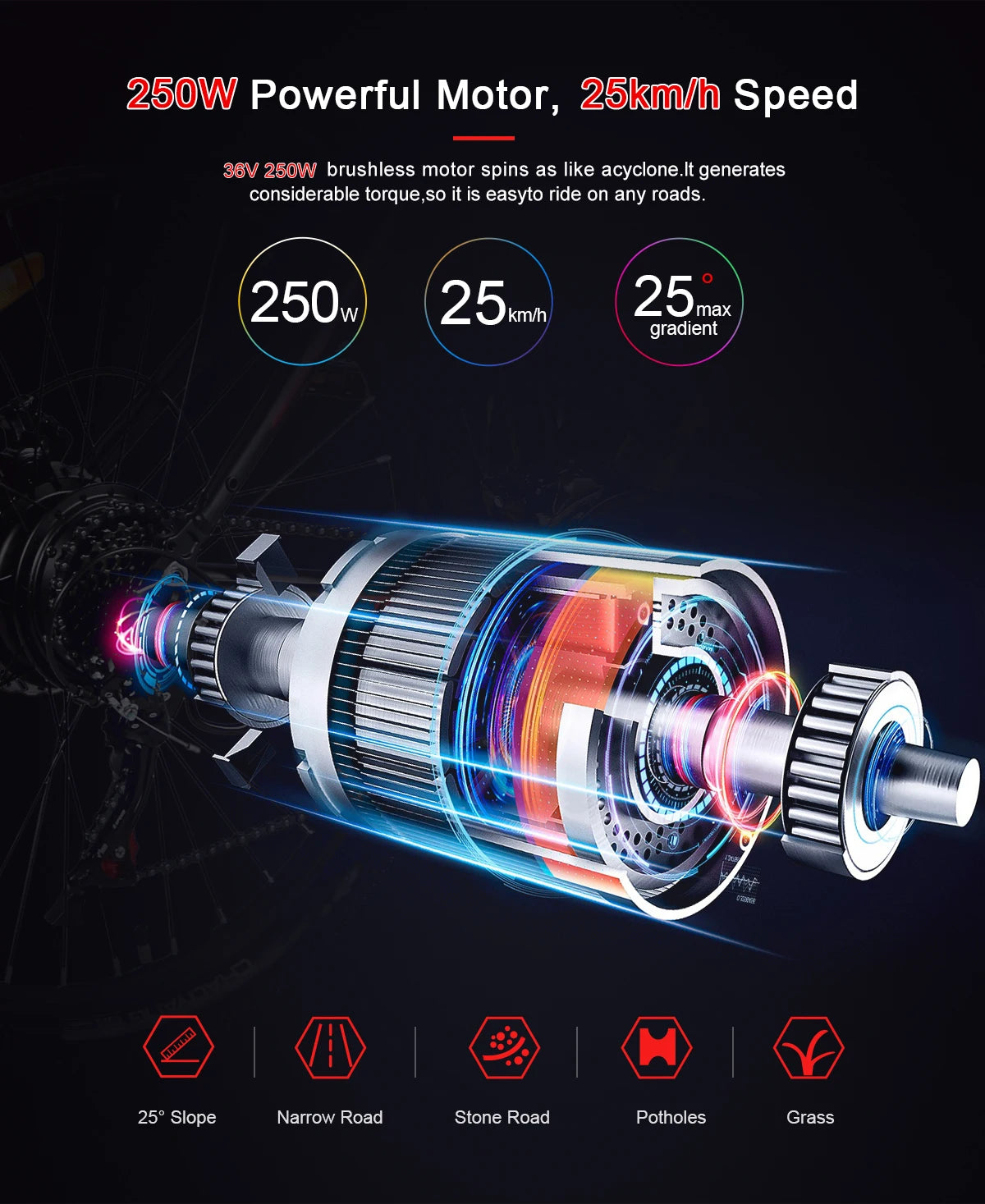26-Zoll E-Mountainbike, 240W Motor 36V 13Ah Lithium Akku und 36-monaten Gewährleistung