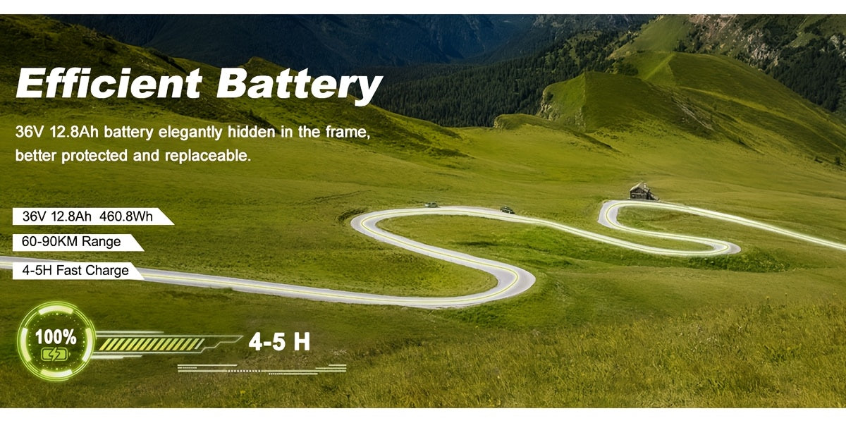 🔋 Starker Akku mit 12,8Ah – herausnehmbar & abschließbar, Reichweite bis zu 60 km je nach Modus