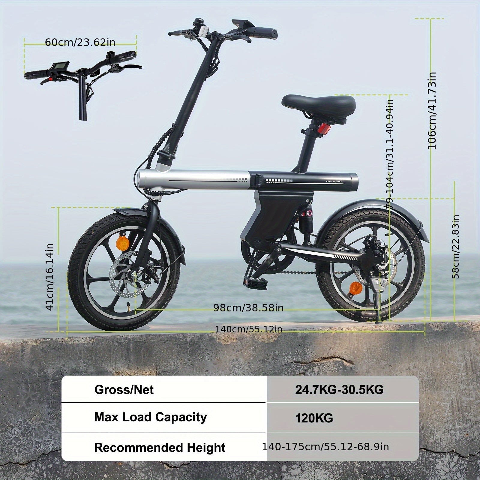 16" E-Klapprad mit 250W Motor, 36V/12,8Ah Akku, bis 60 km Reichweite, 3 Fahrmodi, verstellbarer Sitz & Faltmechanismus – ideal für Pendler & City